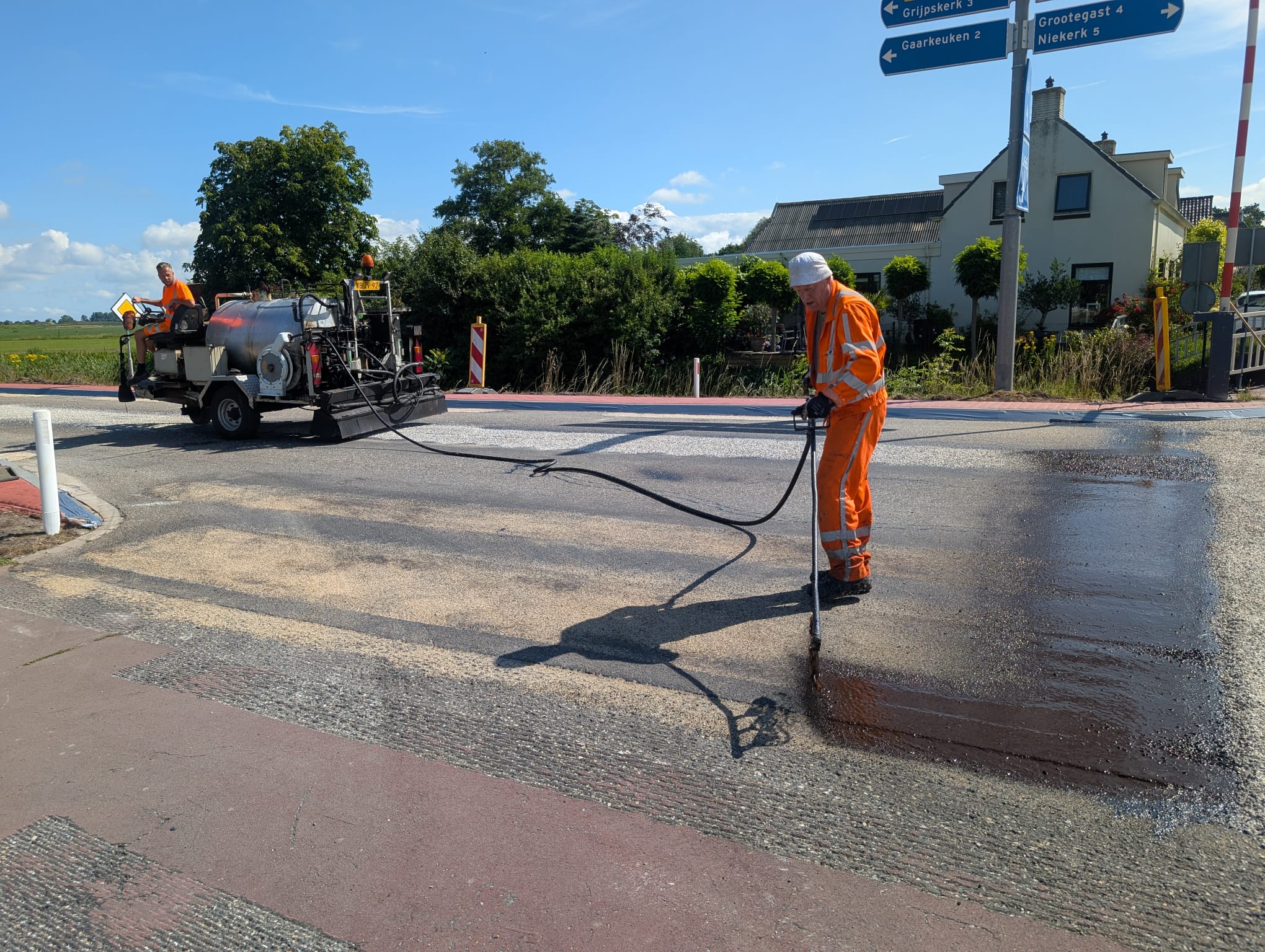 In opdracht van Mulder Infra & Advies hebben wij het kruispunt Zandumerklap te Oldekerk voorzien van een nieuwe slijtlaag.
